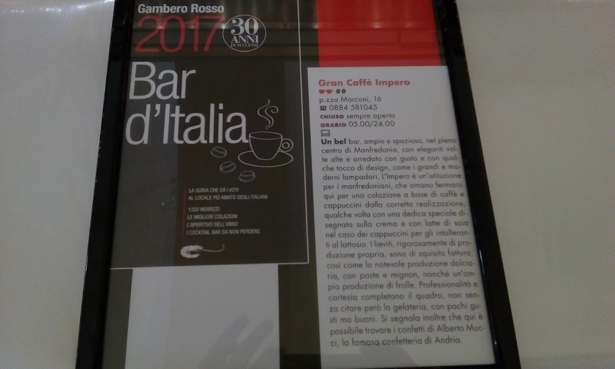 Welcome to Bar Impero, a hidden gem nestled in the heart of Manfredonia, Italy, at Piazza Guglielmo Marconi. This vibrant coffee bar has quickly become a local favorite, renowned for its inviting atmosphere and exceptional menu offerings.